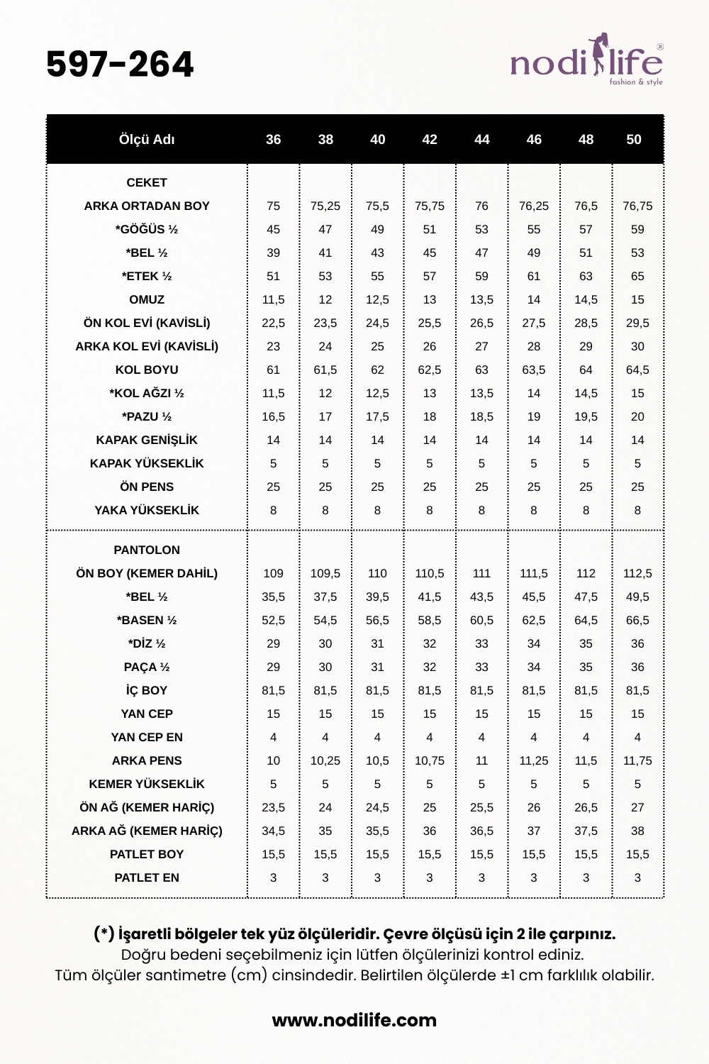 Pantolon Boyu: 105 cm