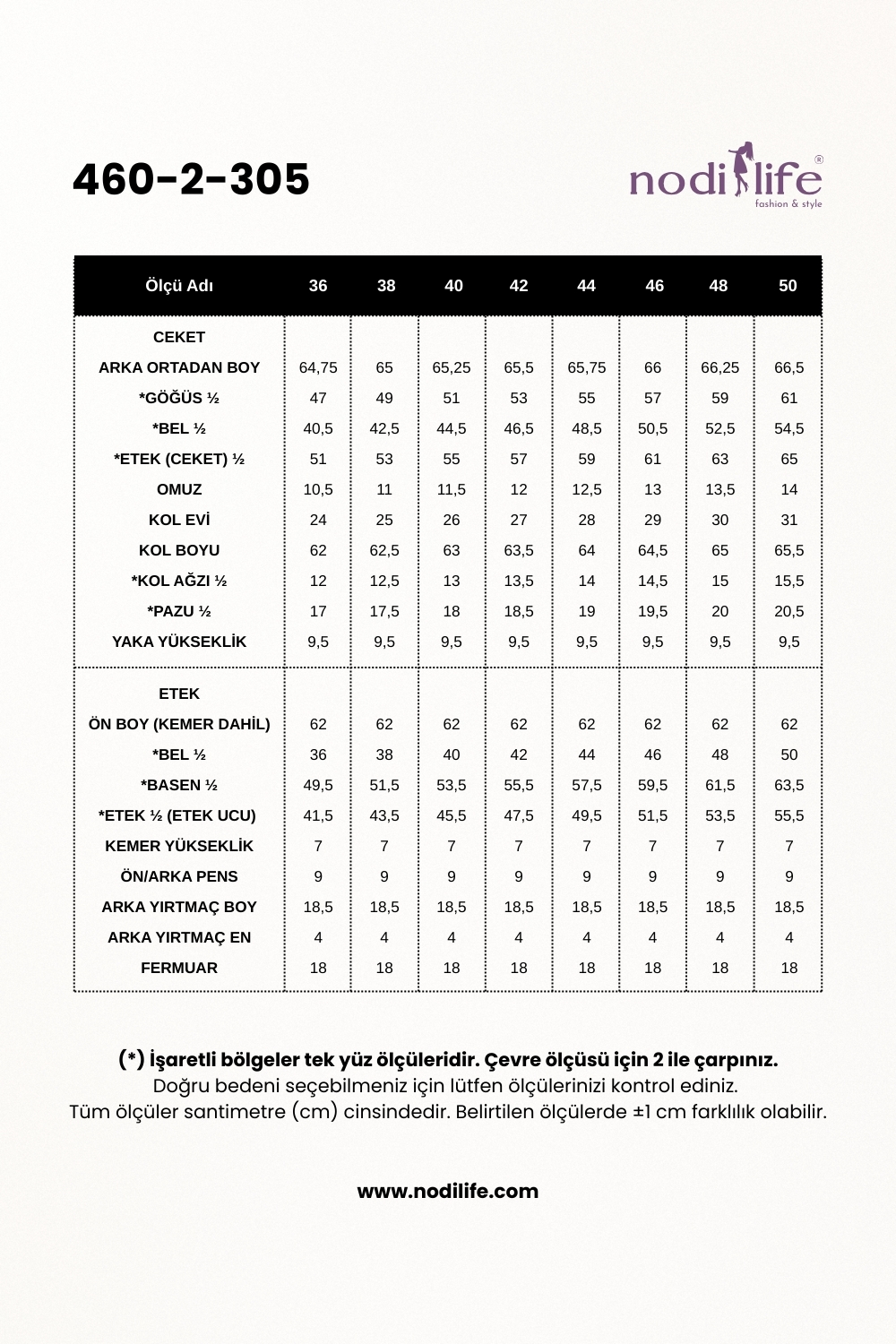 Ceket Boyu: 65 cm (astarlıdır)