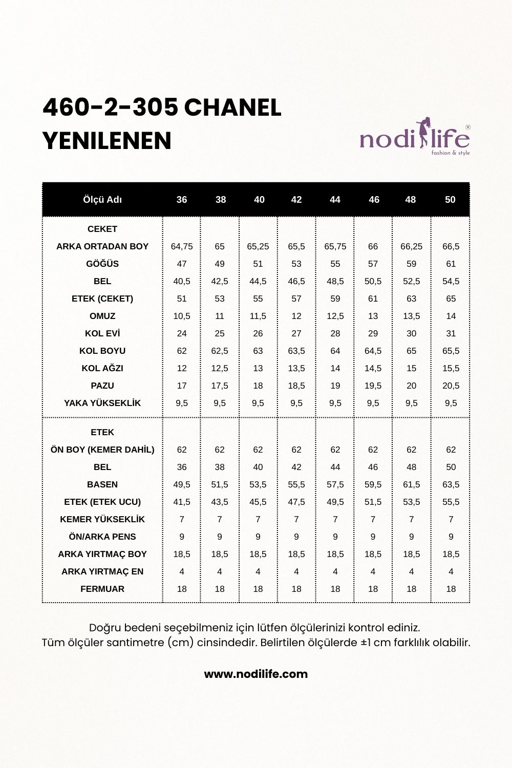 Kumaş Türü: 1. Kalite Chanel Kumaş