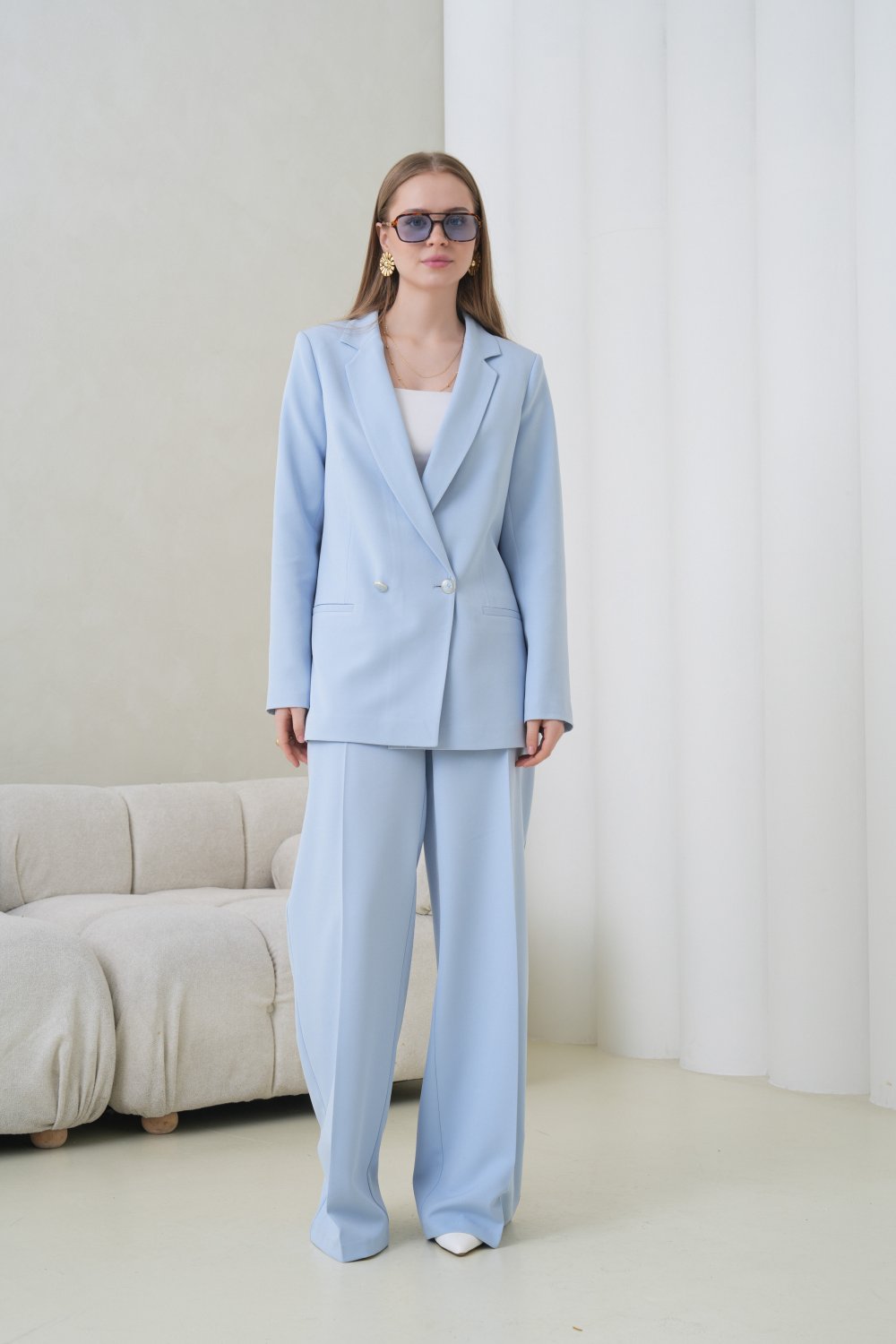 Çift Düğmeli Salaş Kadın Takım Elbise Bebe Mavisi