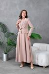 Crop Ceket Kloş Elbiseli Kadın Takım Elbise Bej