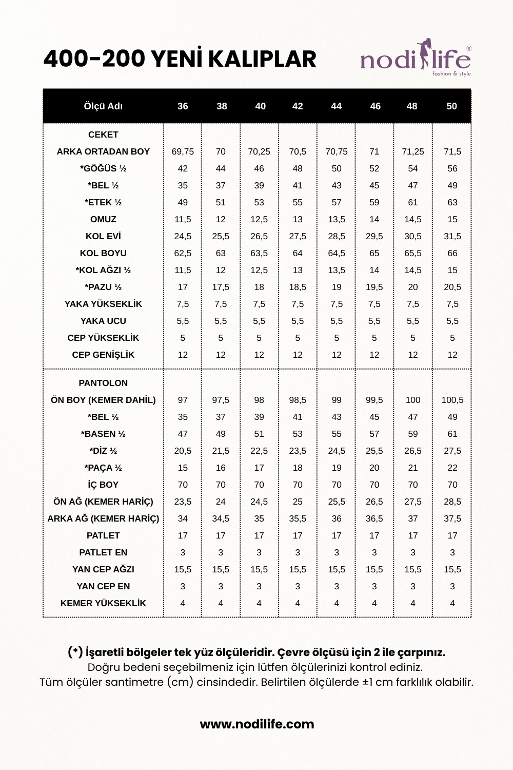 Pantolon Boyu: 95 cm