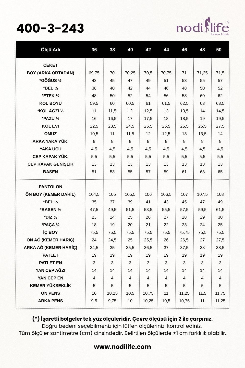 Pantolon Boyu: 95 cm