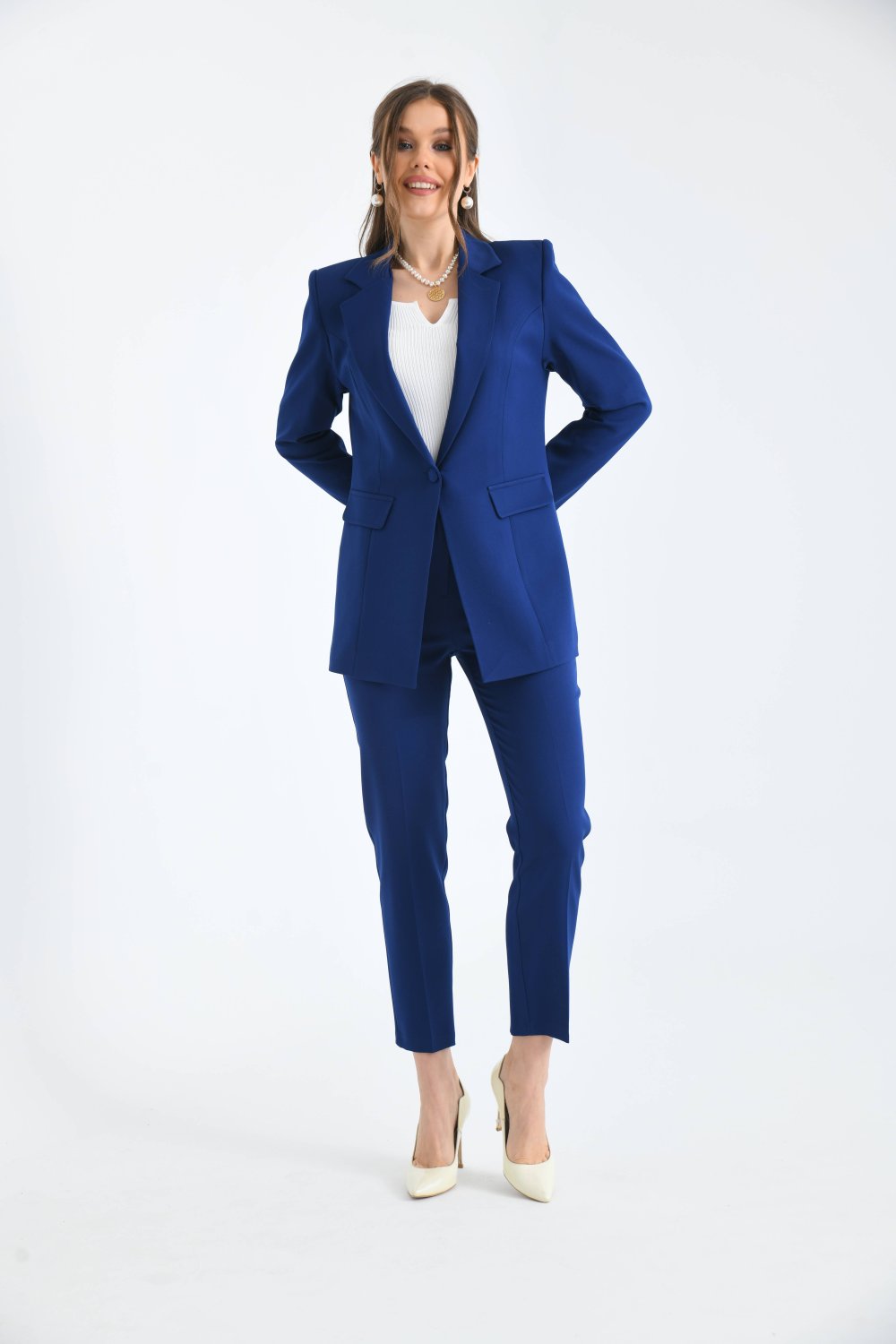 Düğmeli Atlas Kadın Takım Kadın Takım Lacivert