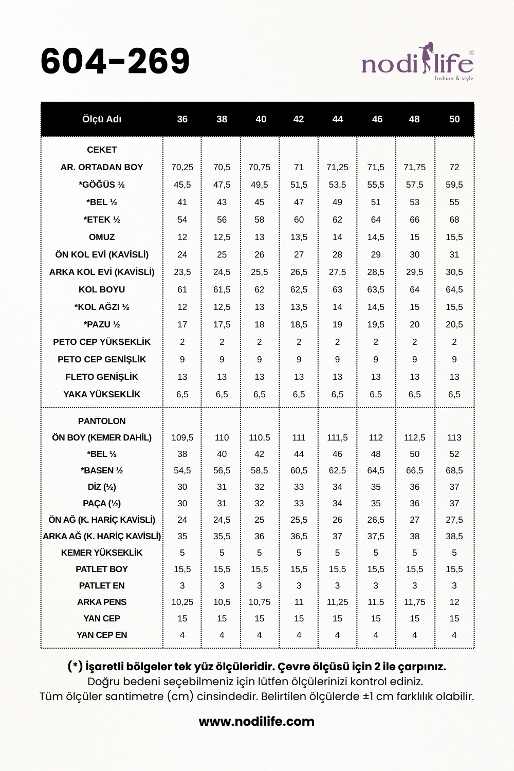 Pantolon Boyu: 110 cm