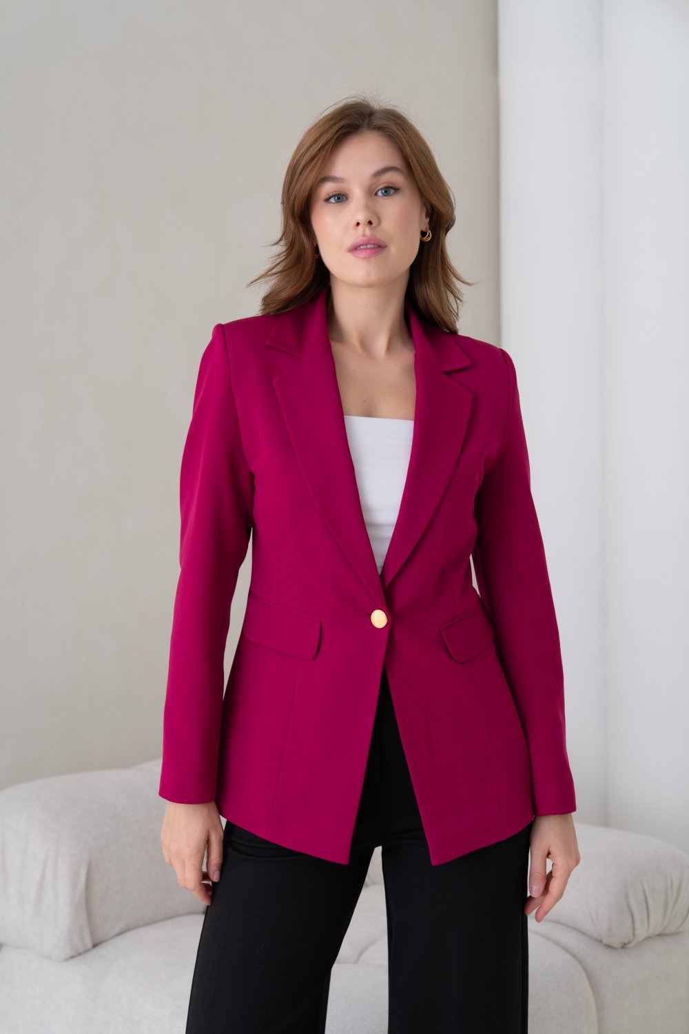 Gold Düğmeli Kadın Ceket Mürdüm