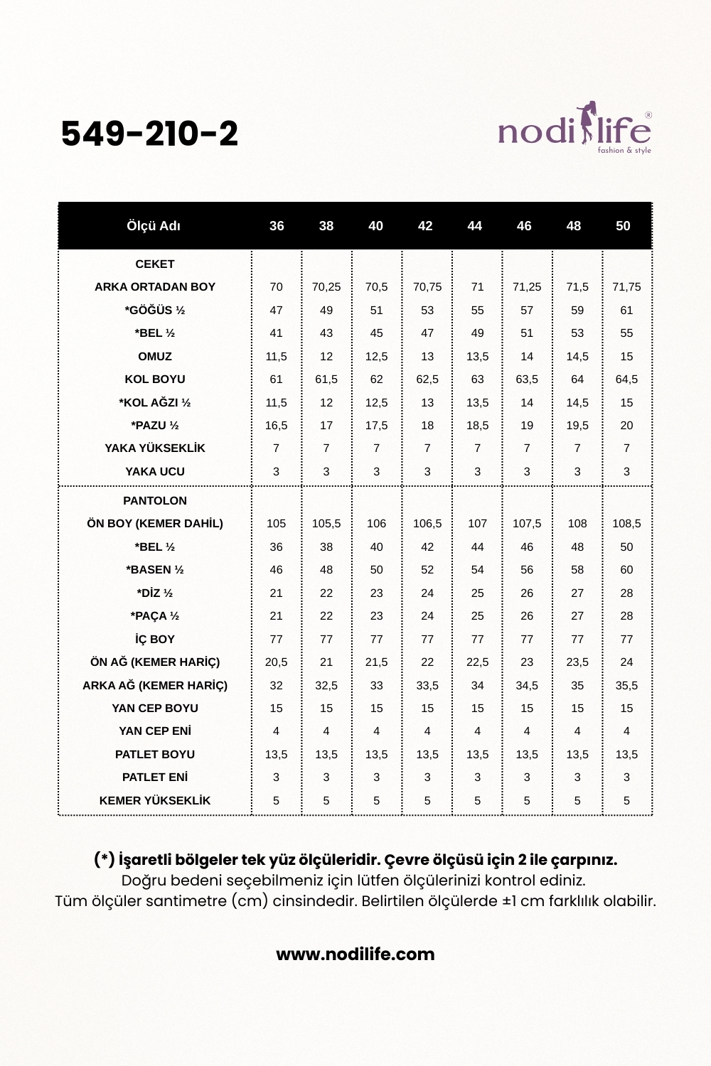 Pantolon Boyu: 95 cm