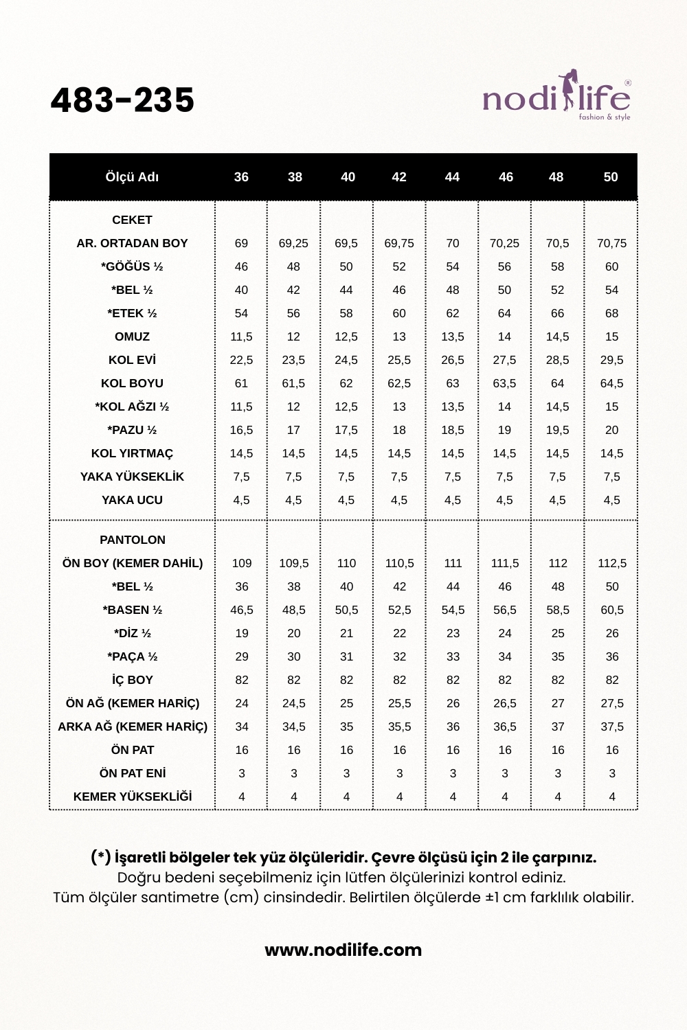 Pantolon Boyu: 105 cm