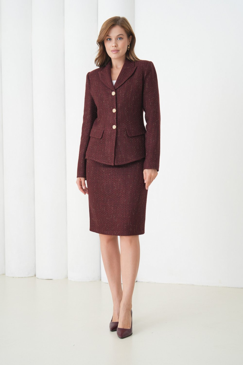 Kol Düğmeli Örgü Kumaş Etekli Kadın Takım Elbise Bordo