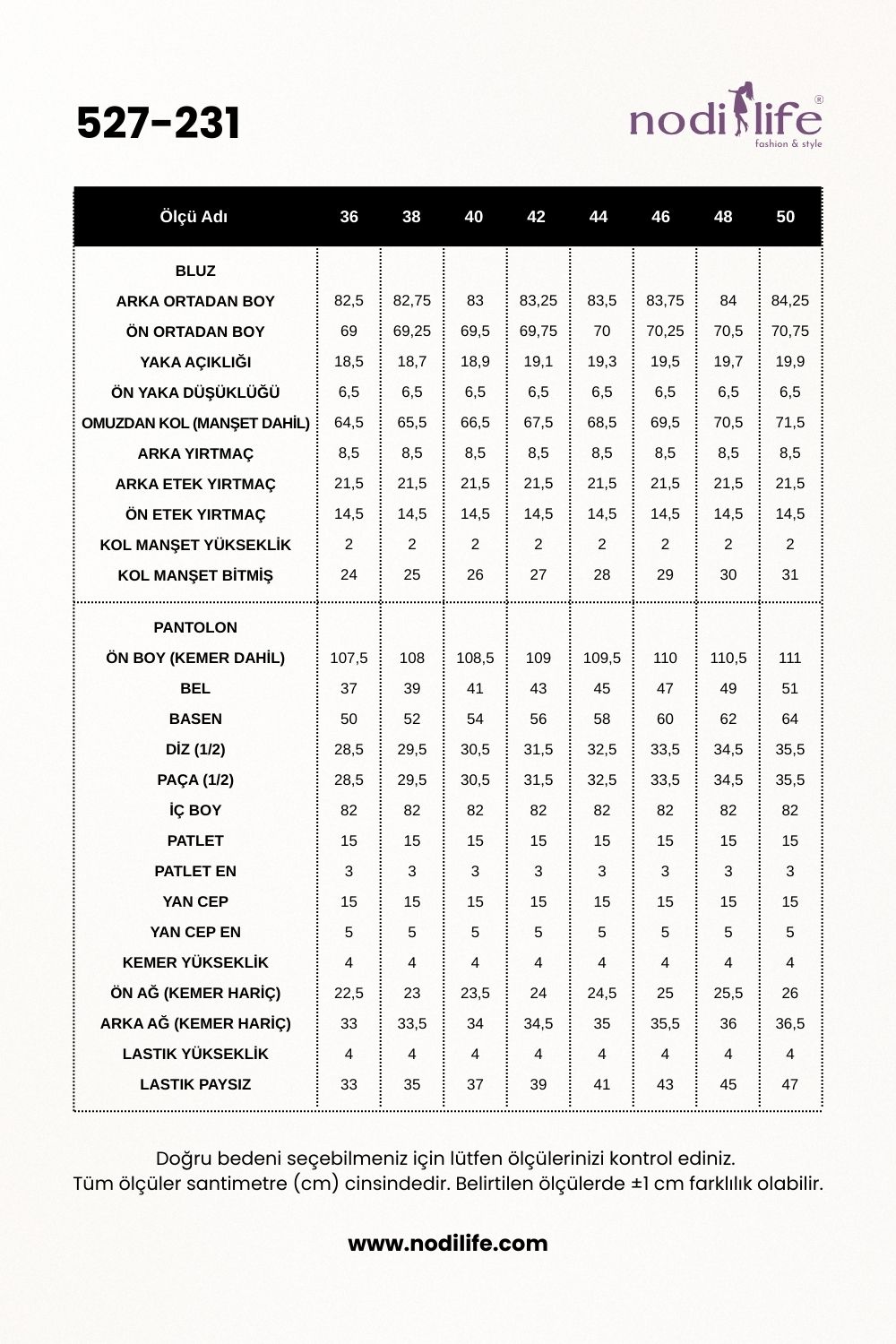 Pantolon Boyu: 107-110 cm