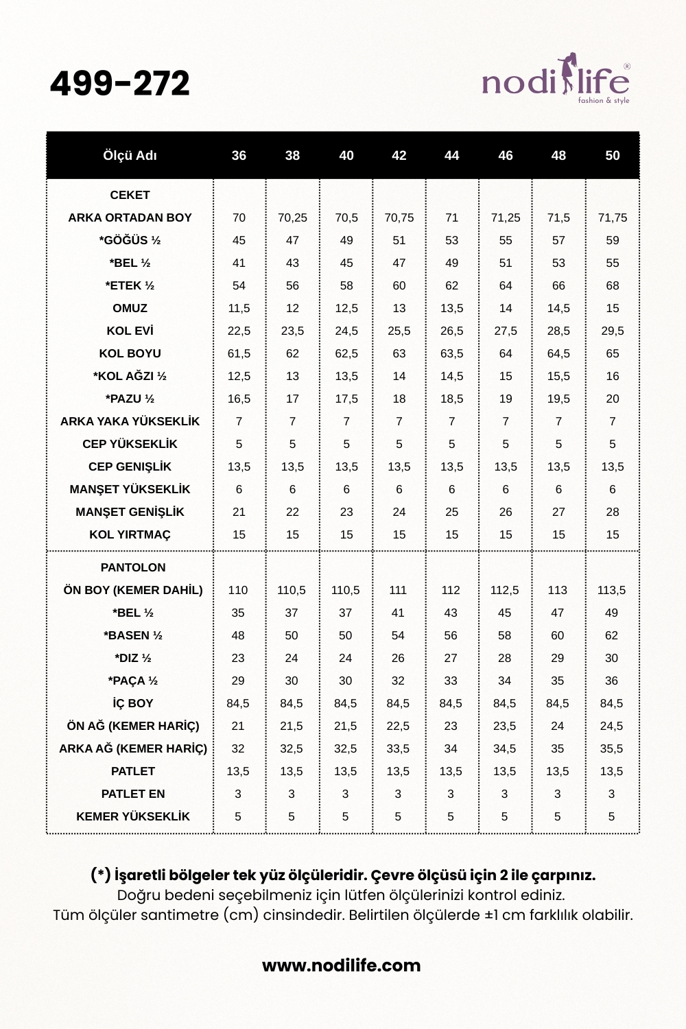 Pantolon Boyu: 100 cm