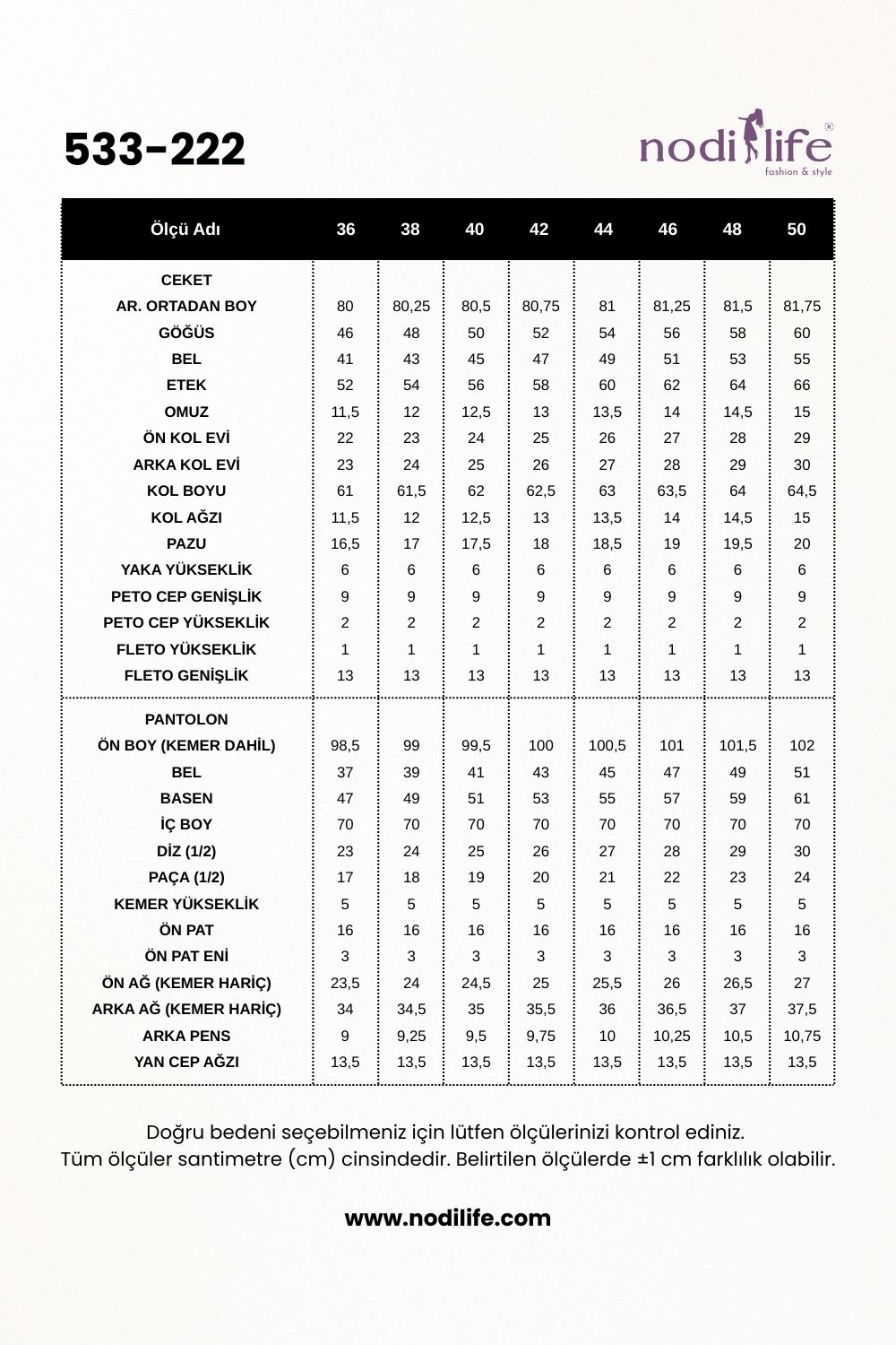 Ceket Boyu: 80 cm astarlıdır