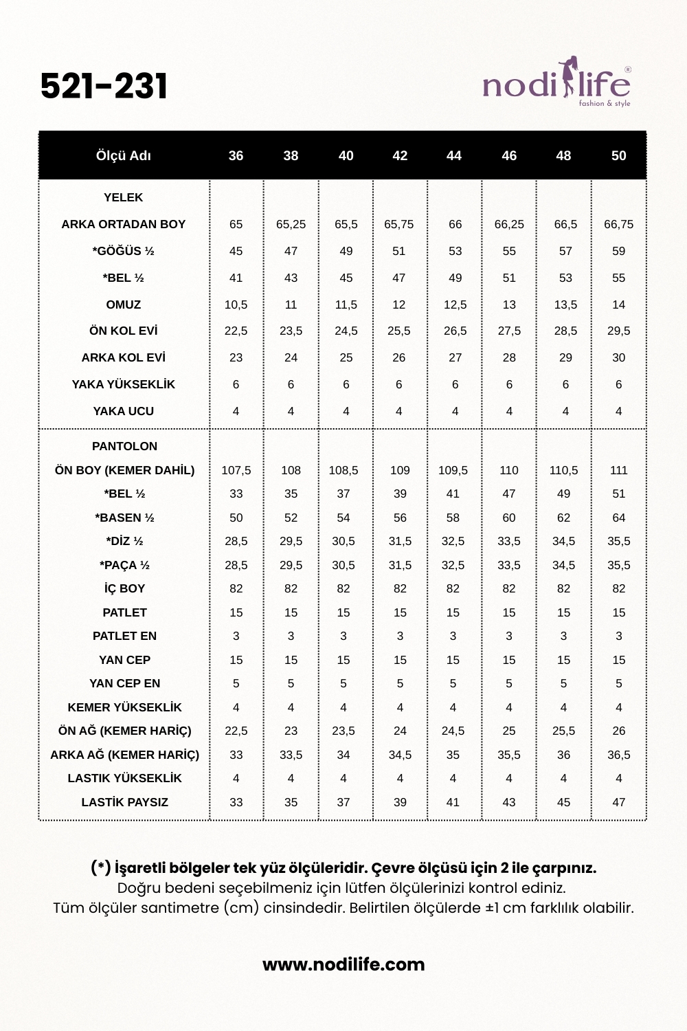 Pantolon Boyu: 107.5 cm